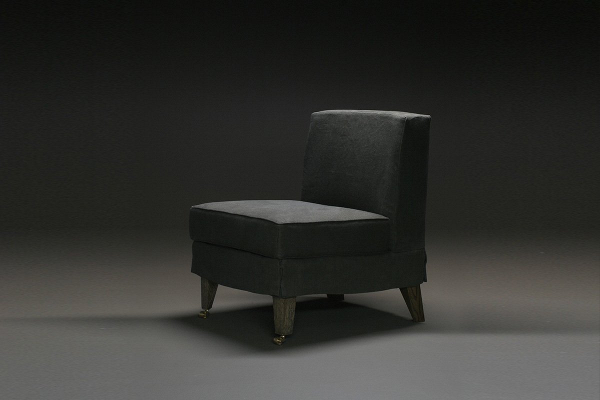 Pieds en chêne massif, roulettes et poignées en laiton.