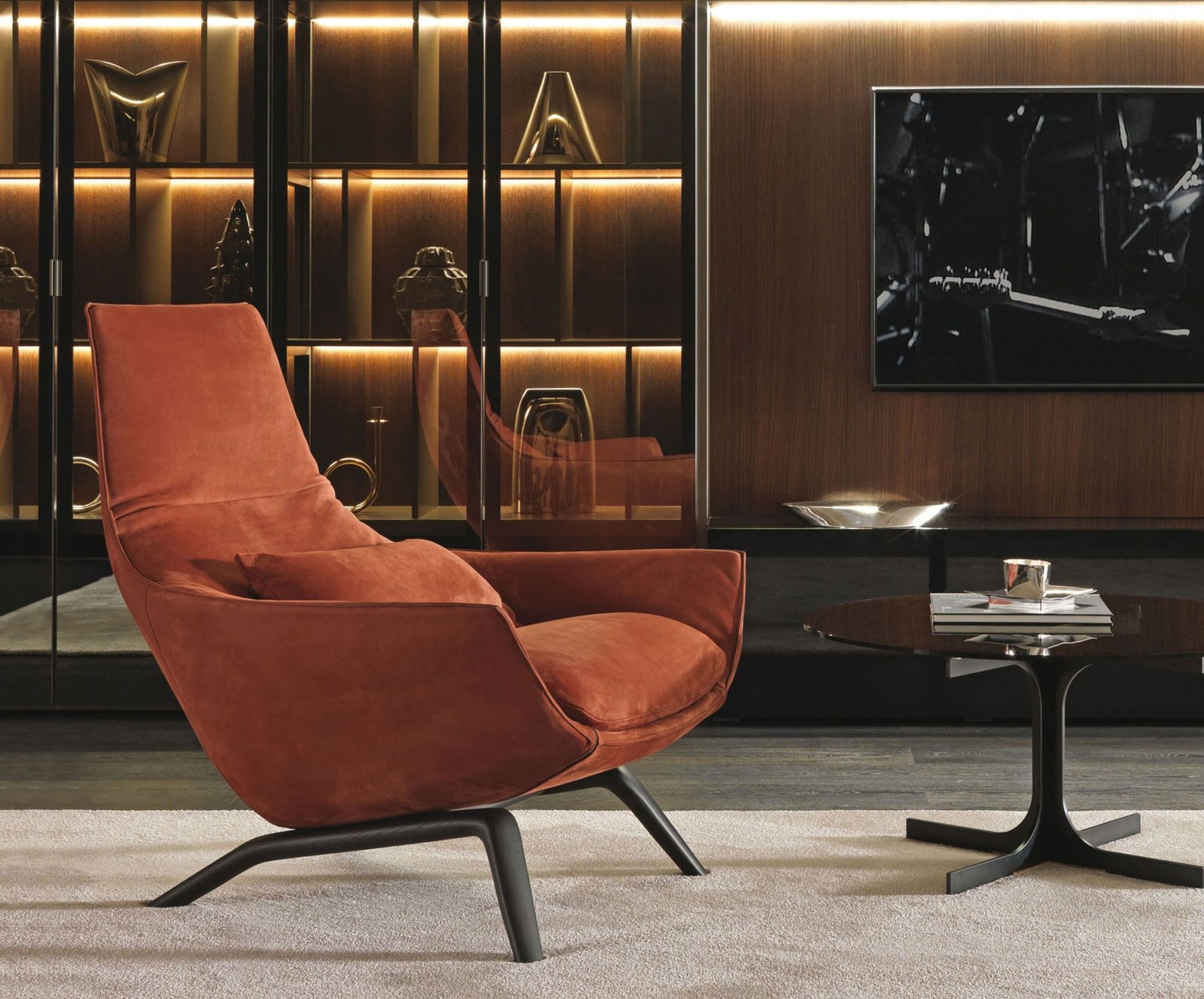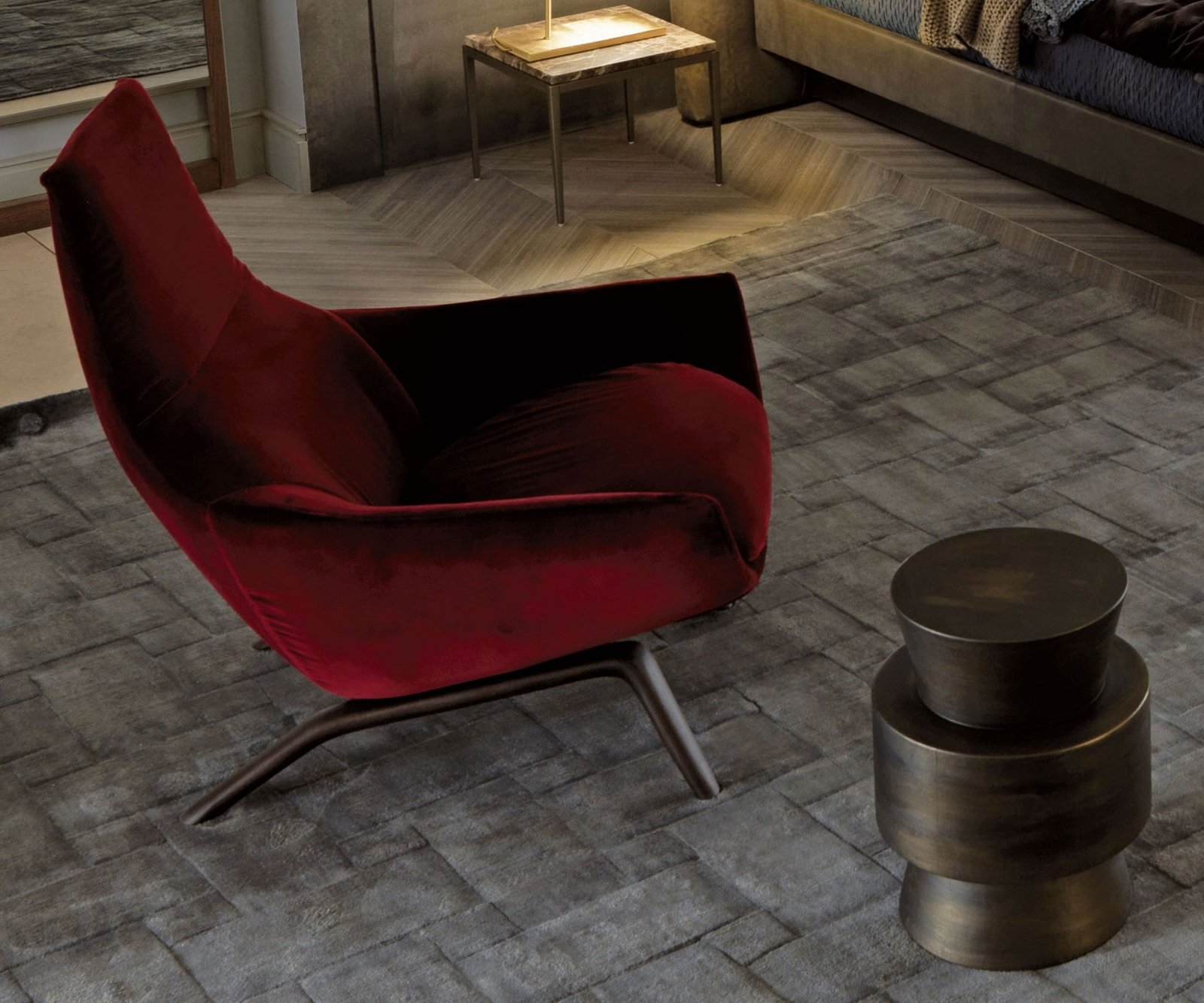 Une réinterprétation du design enveloppant de la chaise Ermes avec l’utilisation de choix spéciaux de couleurs et de matériaux. Le savoir-faire habituel pour chaque petit détail met en évidence les combinaisons inhabituelles, soulignant les qualités esthétiques du produit. Les formes pleines créent une dimension intimiste, une invitation à la détente.