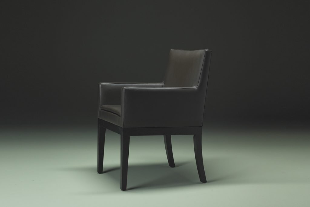 Structure et coussins recouverts de tissu ou de cuir. Assise en Bultex, dossier en demi-duvet. Sabots en chêne vernis.