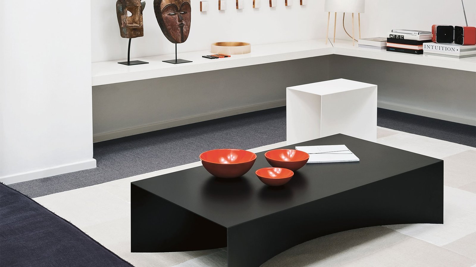 La collection se caractérise par l’extrême pureté des volumes, dont les profils linéaires définissent un solide partiellement déconstruit et creusé.